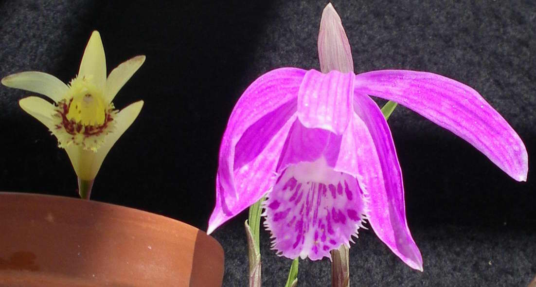 Nur mal als Größenvergleich. Links Pleione forrestii, rechts Pleione x barbarae (keine Kulturform, sondern eine Naturhybrid!).