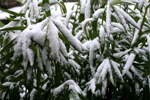 Meinen Oleandern hat dieser Winter nicht gut getan. Zu warm, zu finster und ein zu enges Quartier. Bin aber auch spät zum Ausräumen gekommen. Von Knospen, geschweige denn Blüten ist noch nichts zu erkennen. Normalerweise kommen die ersten Blüten so Ende Mai.