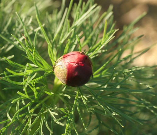 Die P. tenuifolia rubra plena steht schattiger und braucht noch einen Moment. Die Ameisen helfen aber kräftig mit