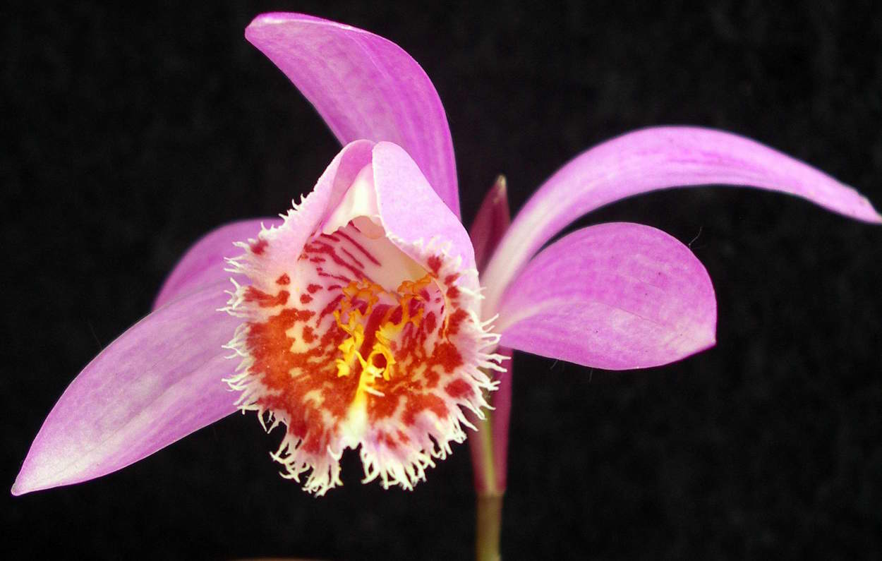 Etwas später als anderswo, da mittlerweile an die kühle Nordseite des Hauses umgezogen: Pleione limprichtii.