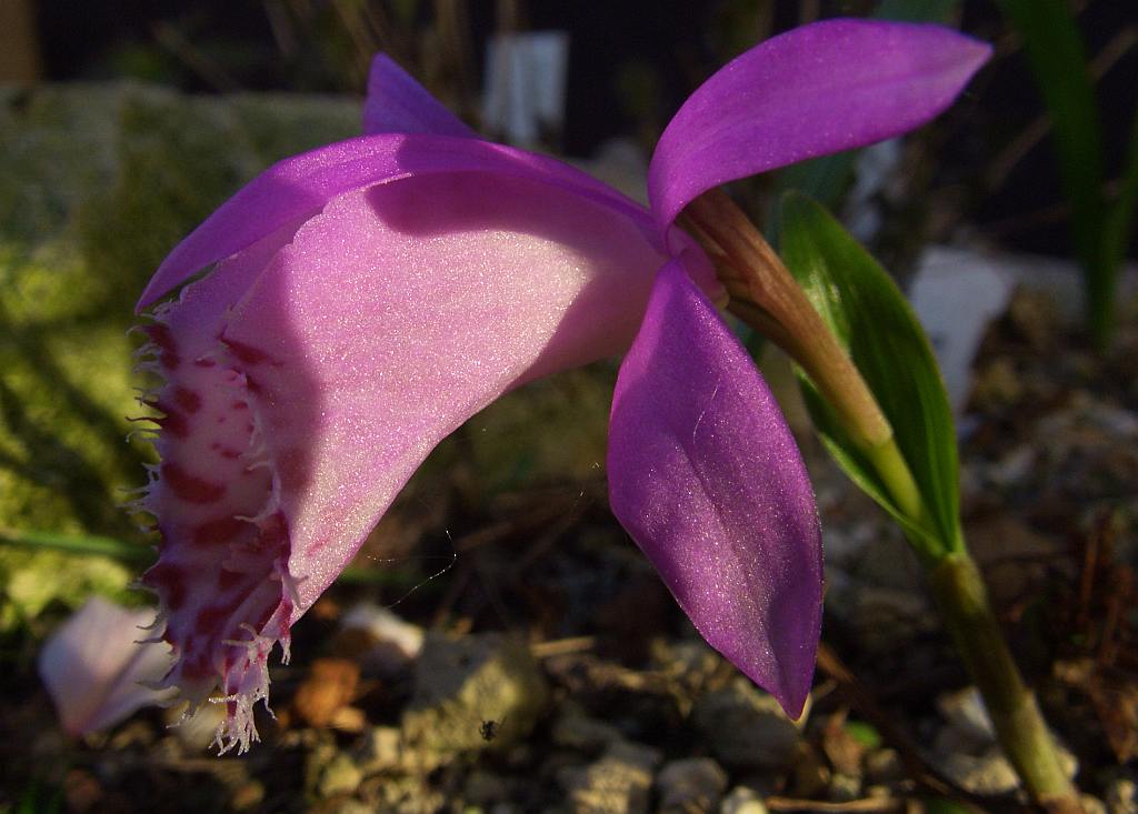 Ich habe letztes Jahr eine Pleione gekauft -genauen Namen weiß ich nicht-, einen Teil im Töpfchen gelassen und ins Wohnzimmer gestellt und den andern vor das Haus gesetzt. Der Teil draußen hat nun eine Blüte, das im Topf bekommt gerade kleine Blättchen, nachdem das Pflänzchen, ebenso wie im Freien, ganz verschwunden war.
