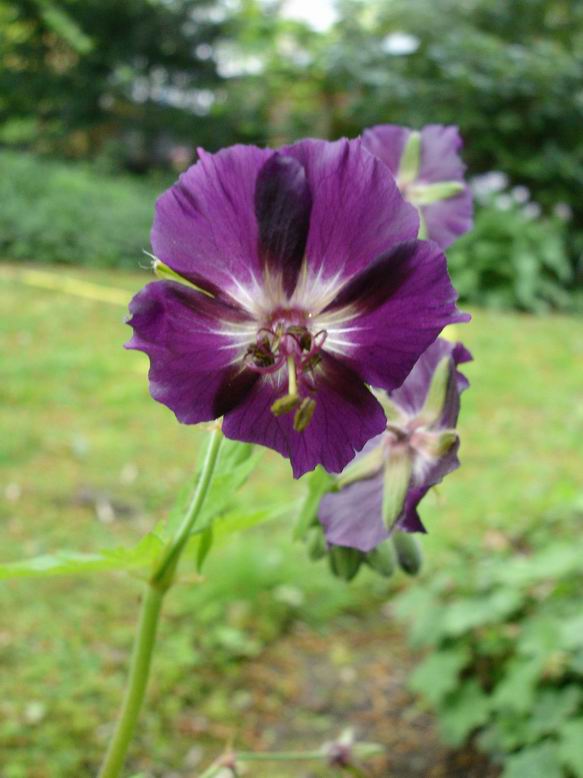 Ich hatte Euch ja im vergangenen Jahr ein Bild von dem schönen,beinahe blau blühenden G. phaeum "Lily Lowell" gezeigt. Nun habe ich einen Sämling, der ganz in der Nähe steht. Er hat die große, relativ flache Blüte von "LL", aber ist deutlich purpurfarbener. Die Blätter sind nicht gemustert, aber die Farbe könnte doch durch die andere Sorte "Samobor" beinflusst sein, die sich überall ausbreitet. Allerdings ist das nächste Exemplar dieser Varietät ganz weit von LL entfernt.Jedenfalls finde ich diesen Sämling eigentlich auch ganz hübsch,Liebe Grüße Barbara.Hier erst mal "Lily Lowell"