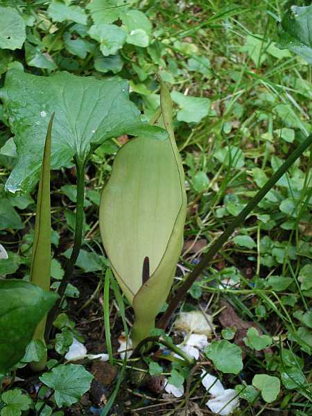 sie ist auch in natura "gelblicher" als auf dem Foto ... oder Ruskans hat mich über's Ohr gehauen ...das ist aber kein a. italicum albispathum. dazu müßte die spadix hellgelb gefärbt sein.