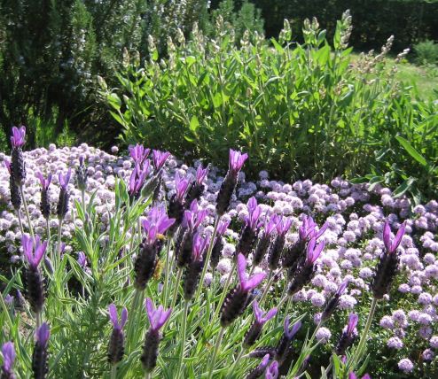 Meiner Meinung nach eine gelungene Kombination:Lavandula stoechas, Thymus longicaulis, Rosmarinus off. und Salvia off.LG Lilo