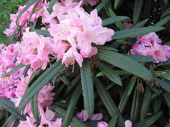 Eine der schönsten und sehr einfach zu haltenden Rhododendron-Wildarten: Rh. makinoi aus Japan. Bemerkenswert sind die sehr schmalen Blätter, die unterseits mit einem weißlichen Indumentum bedeckt sind.