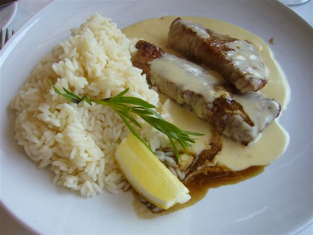 Heute war ich wieder in Eglisau (CH) am Rhein, es gab:Bärlauchflan auf KräutersalatKalbsschnitzel an Zitronensauce mit ReisSüssmostcreme