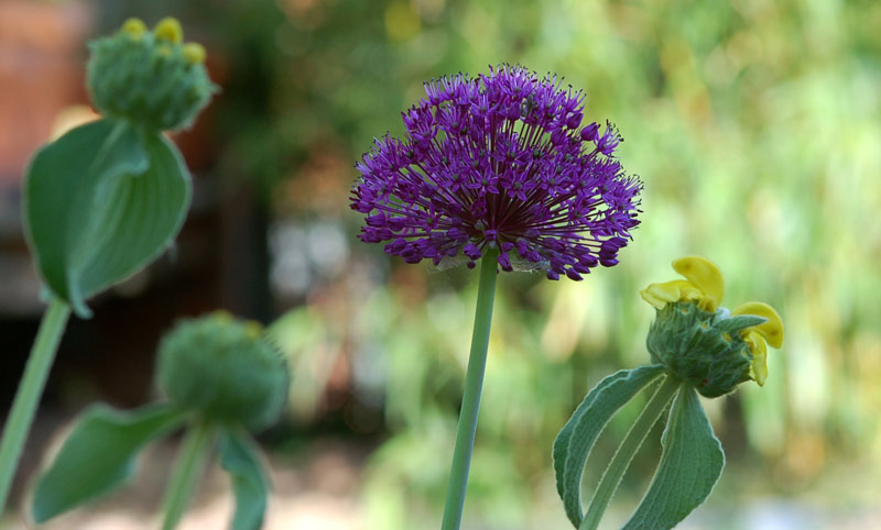 und langsam legt auch Phlomis fruticosa los (da es heute sehr windig ist, übernimmt er in diesem Bild nur die Nebenrolle)