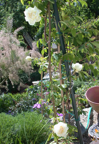 Beruhigend, dass es auch andern so geht!Viele schoene Sitzplaetze hast Du- die sind doch das Salz in der Suppe. Und sitzen kann die Gaertnerin doch da, wenn es zu dunkel ist, noch was zu arbeiten: dann fliegen auch die Fledermaeuse. Wir sitzen dann mit einem after-work drink da und versuchen zu identifizieren, was man so alles hoeren kann. Viele Blueten leuchten noch im Dunkeln und ein bischen (schwachwattige) Beleuchtung der kitschigen Art glimmt im Hintergrund.Hier ein Ausschnitt aus meinem Rosenlaubengang incl. neuer Gartenbank. Der Garten macht mich noch arm