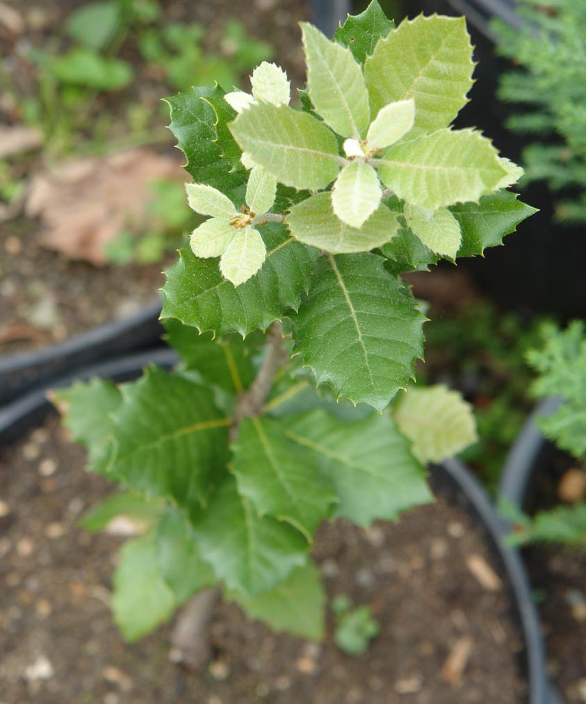 Ich hab mal nur die fotografiert, die mir sehr wackelig in unserem Klima erschienen. Sie fühlten sich vom alten Blatt her immer- oder wintergrün an.Quercus acuta (noch nie gehört)
