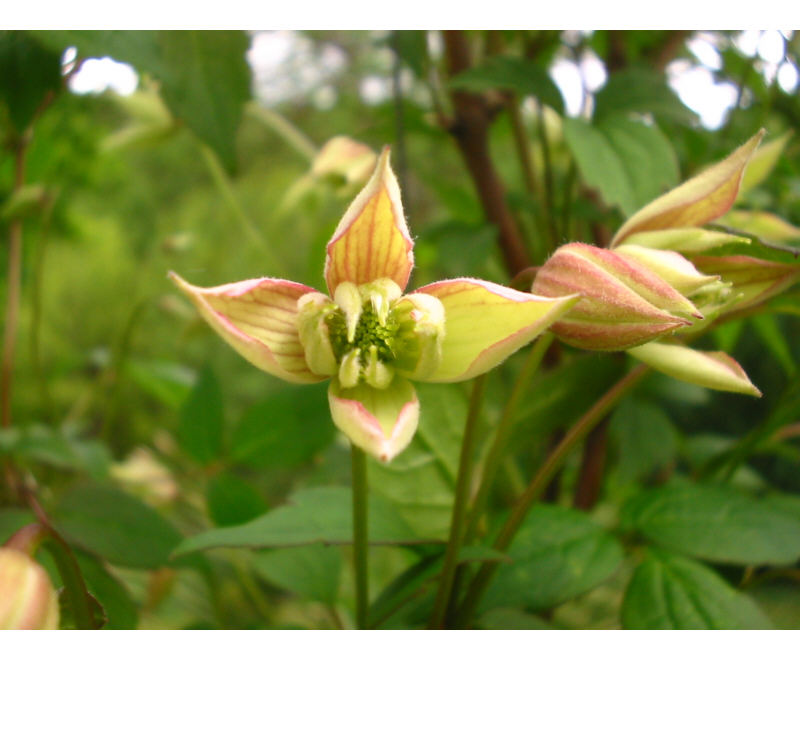 Also, diese hier hab´ ich letztes Jahr als Montana rubens im Baumarkt mitgenommen, das ist sie ja wohl aber definitiv nicht...Daneben hatte ich eine andere rubens stehen, deren Blüte sah so aus, wie sie sollte, leider muckt sie sich dieses Jahr nicht mehr. Nachdem ich Viridifloras "Marjorie" hier gesehen hab´, dachte ich, das muss sie sein, Bertas "Marjorie" sieht ja nu wieder ganz anders aus....Ist meine denn ein Marjoriechen?