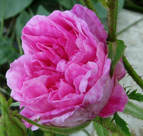 Gestern hat die erste der Rosen, welche ich letztes Jahr von einem lieben Forumsmitglied als Ableger bekommen hab angefangen zu blühen.Namen weiss ich keinen - sozusagen eine namenlose Centifolia - die Blüten sind relativ klein und stark gefüllt. Steht heuer das zweite Jahr bei mir und ist voll besetzt mit Blütenknospen.