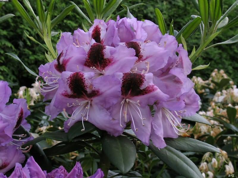 Eine sehr alte Hybride von Waterer ist Purple Splendour (Ponticum X , vor 1900, 1931 Wertzeugnis RHS).Sie gehört immer noch zu den den dunkelsten violetten großblumigen mit einer fast schwarzen Zeichnung.
