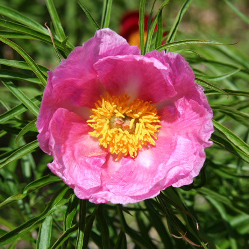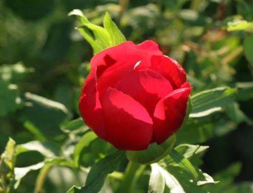 Dies ist die letzte Wildpäonie, die nun noch aufblüht: Paeonia peregrina. Sieht sie nicht beinahe aus wie eine Rose?? Morgen wird sie ganz geöffnet sein.
