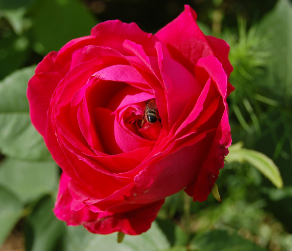 Ulrich Brunner fils hat schon viele Knospen, eine erste Blüte ist nun aufgegangen. Eine vorwitzige Biene hat sich gerade in die Blüte eingezwängt als ich das Bild gemacht habe.