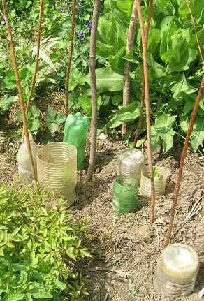 Letze Woche habe ich das optimale Minigewächshaus gesehen bei einem Gartenfreund. Der hat 5 Liter PET Flaschen durch die Mitte geschnitten und verwendet den oberen Teil mit Schraubverschluss als Kälte und Schneckenschutz für Einiges, was die Schleimer so wegfressen würden. Ausserdem kann er, durch den Schraubverschluss zu öffnen die Sache gut lüften und es wird in den grossen Flaschen nicht gleich zu eng. Ich habe zwar auch schon Flaschen gesammelt für meinen "einmal kommenden"Gemüsegarten