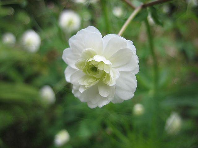 Ein sehr hübsches filigranes Gewächs ist der Ranunculus aconitifolius mit seinen kleinen weißen gefüllten Blüten.
