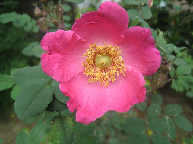 Heute habe ich die allererste Blüte (überhaupt) von R. 'Highdowniensis' in meinem Garten erlebt.Ich bin ganz hingerissen von dem intensiven Rosa. Und wenn ich erst nachher an die tollen flaschenförmigen Hagebutten denke...