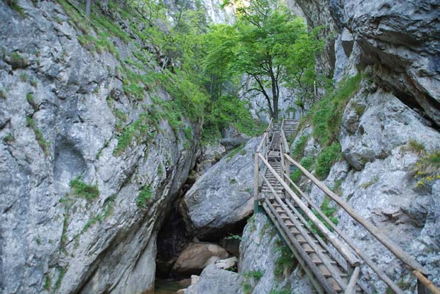 3 € werden für die Erhaltung der Leitern in der Klamm verrechnet, ein Beitrag, der gerechtfertigt ist, wie man bald sehen wird.