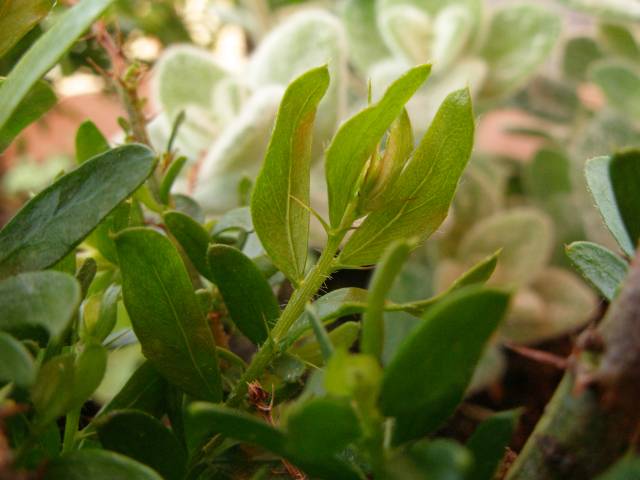 Hallo Brigitte,von wo wurde die Pflanze Dir denn mitgebracht ? Ein warmes Gebiet ?sind die Blätter leicht sukkulent ? Ich sehe (?), dass die Zweige sehr stachelig /dornig sind. Vielleicht in Richtung Stechginster ? Oder was gibt es denn im Mittelmeerraum, was so bedornt/bestachelt ist ? Es gibt ein Hundsgiftgewächs, Carissa ,vielleicht ist es damit verwandt.lg,fips