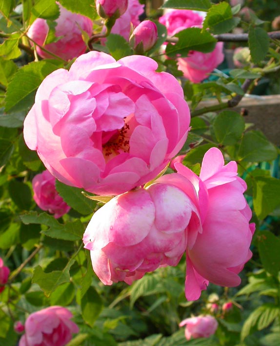 Damit ist die Kante komplett: Maria Lisa, Jacques Cartier (noch zu klein und verdeckt), Trier, Rosarium Uetersen, Waterloo, Elmshorn und Phyllis Bide. Ganz hinten und nicht mehr zu erkennen stehen noch Cardinal Hume, Stanwell Perpetual als Hochstamm und Mozart.