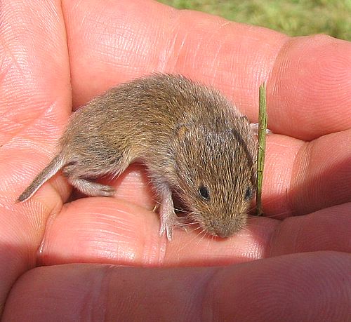 Dieses Wühlmaus-Jungtier fand ich im Garten. Es stolperte durchs Gras und war völlig zahm.So etwas kann man doch nicht umbringen!!Ich habe das Tierchen wieder ins Gras gesetzt. Sollte es erwachsen werden, ist die Schonfrist abgelaufen und die Jagd offen!