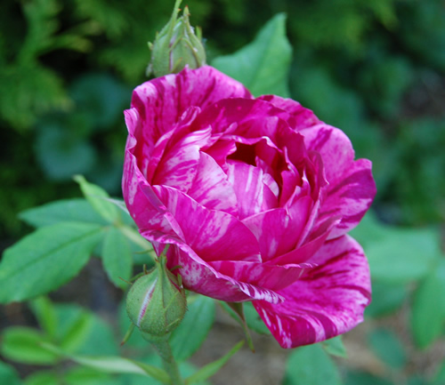 Viridiflora, Goldstern steht beim mir im Halbschatten, vielleicht macht es dies aus?Ich bin immer wieder erstaunt, wie so kleine Rosen schon die schönsten Blüten spenden. Dann gibt es andere, die warten ein gutes Jahr bis sie endlich loslegen. Ein Commandant zeigt seine Farbe: Commandant Beaurepaire, im Frühling gepflanzt. Es ist eine alte Bourbon-Rose, 1871.Hat die jemand, ich würde mich über ein Bild in Ganz freuen?