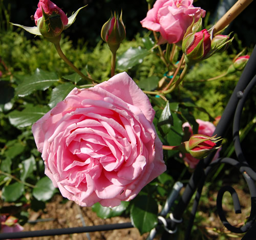 Sie stand zwei Jahre in einer grossen Balkonkiste im Halbschatten. Ihre Blüten gingen kaum mal auf, die ganze Zeit war sie voller Läuse und zu guter letzt vertrocknete sie fast. Also Rettung in letzter Minuten. Sie dankt es nun, indem sie sich von der allerschönste Seite, mit reichlich Blüten in sanften Rosa zeigt.