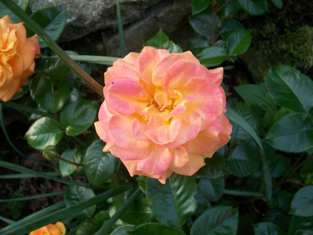 Da war ich doch bereit, meine geschenkte Bonita Renaissance als Kitschrose zu nominieren. Die Blüten eine Mischung aus Textmarker-Pink und Textmarker-Orange. Habe sie dezent hinter das Wasserfass gepflanzt, um keinen Augenkrebs zu kriegen