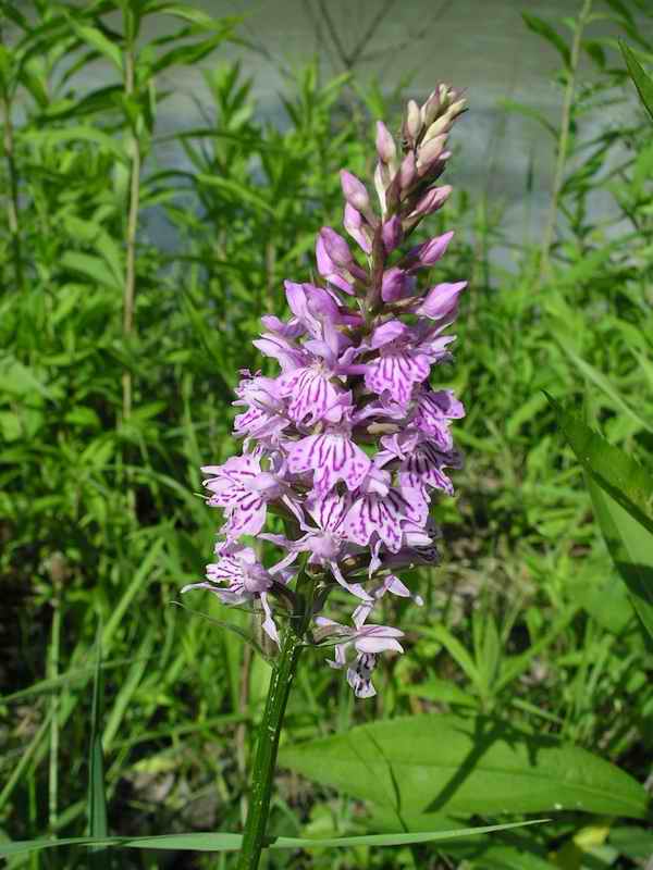 Es ist bestimmt ein Knabenkraut, welches sieht man am Besten an den Blättern. meines blüht auch gerade am Teich.