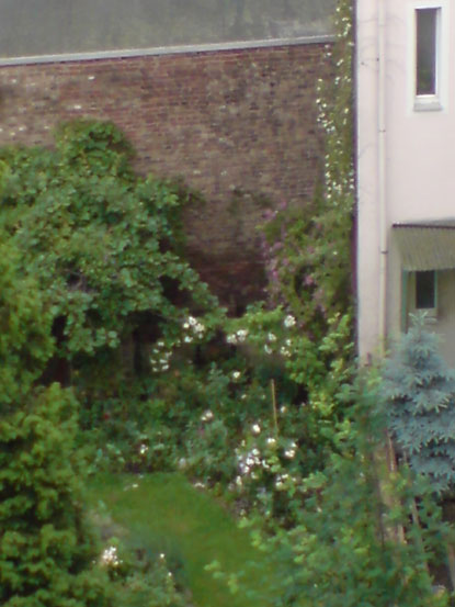 die beiden clematis klettern fröhlich an den toten zweigen von efeu und wildem wein weiter, wenn sie den sicheren hafen der klettergerüste verlassen ahben...die rosen neigen dazu dann eine "welle" zu machen, wenn man sie nicht regelmässig hochbindet...bzw endlich einmal neue rankgitter anbringt über den alten