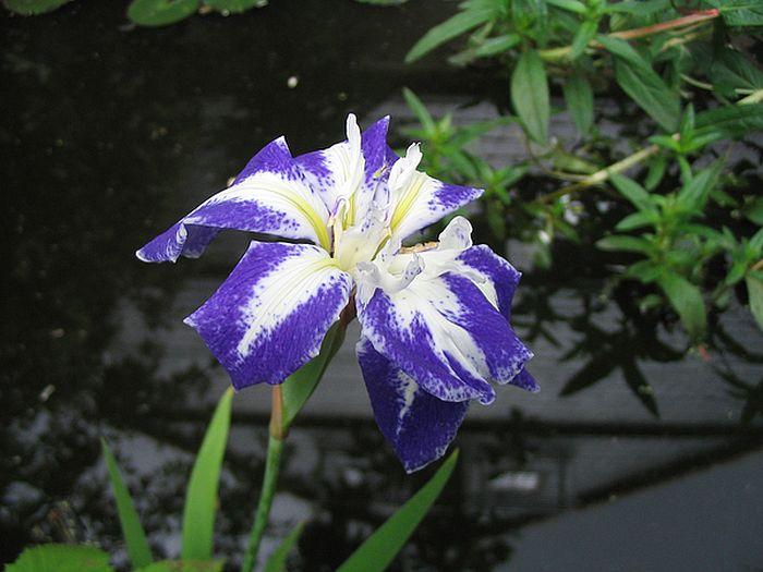 Steht permanent im Wasser und soll eine Iris laevigata sein.Sieht etwas harlekinmäßig aus, oder?