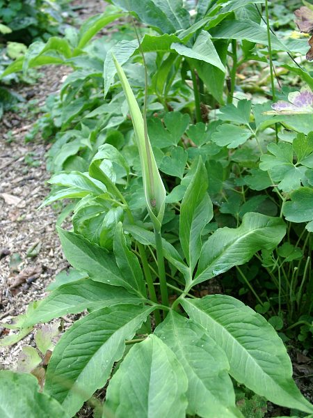 kein arisaema, auch wenn ähnlich im aussehen. eigentlich ot, aber da oft verwechselt mit arisaema dracontium, zeige ich doch ein foto von pinellia pedatisecta. habe dieses aronstabgewächs als a. dracontium-samen bekommen. die spatha ist bei dem exemplar etwas unüblich weit geöffnet und gewährt einblick auf die spadix, die als zwitter daherkommt. nachdem geschlechterwechsel bei den aronstabgewächsen den arisaemas vorbehalten sein soll, müsste pinellia immer zwitterblüten haben.norbert