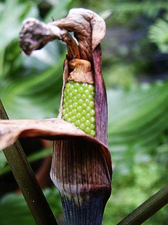 . von den ausgefalleneren arten setzen bei mir heuer a. elephas (s. posting #43+44) + wie's aussieht a. fargesii (s. posting #81) + eine fargesii varietät samen an. bei dem fargesii war ich mir so sicher, dass es männliche exemplare waren, aber alle 3 exemplare mit blüten haben samenansatz. also waren es entweder zwitter oder ich habe mich furchtbar getäuscht. ärgere mich, dass ich kein foto von einer geöffneten spatha gemacht habe