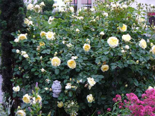 Es sind drei Ausläufer, die ich im 2005 im Dreieck gepflanzt hatte und die nun zu einer grossen Pflanze zusammengewachsen sind.@kala : habe mal die Bilder bei Helpmefind angeschaut - und auch Dein 2. Bild, sieht meiner Rose schon ähnlicher.Auf dem Foto bei Austins Homepage und im Katalog "meiner" Rosenschule ist der Alan um einiges dunkler und wird als "satt Rosa" oder "gefälliges dunkelrosa" beschrieben ...Aber mit den Rosenfarben ist es halt immer so eine Sache .....