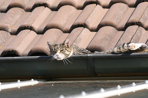 HalloIch hab auch ein lustiges Katzenbild. Die ^Katze meiner Schwester schläft immer in unserer Dachrinne*lg*