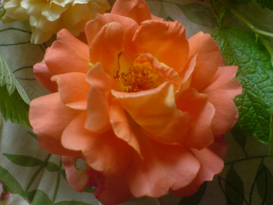 am we habe ich einmal bei meinen eltern gewildert und ein paar rosenblüten zur tischdeko benutzt ;)es sind blüten der buff beauty (zartcreme) mit westerland und einem zweiglein der zum ersten mal blühenden lykkefund...dazu blätter von zitroenmelisse, walderdbeeren und apfelminze: ein zart blumig-frischer duft entströmte der schale den ganzen tag
