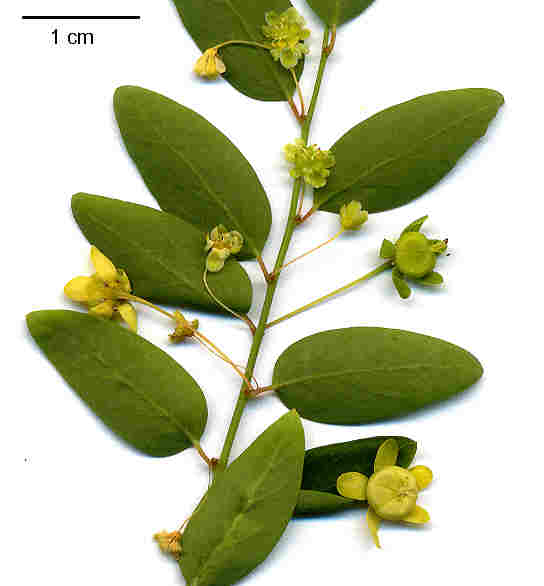 Außerdem hat Diervilla ebenfalls gegenständige Blätter.Neuer Versuch:Andrachne spec., vielleicht A. colchica (hier noch ein Bild) oder eher A. phyllanthoides ( = Leptopus phyllanthoides). Oder eine andere der rund 20 Arten?P.S. Sollte das stimmen, hätt ich gern ein Stückchen (mit Wurzel)