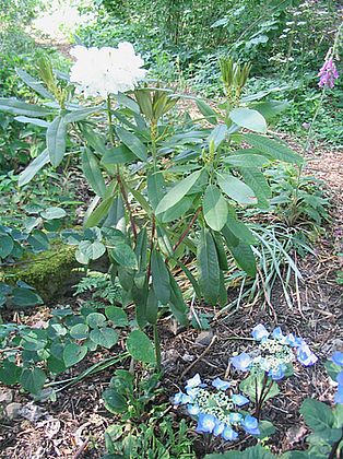 Da Rh. decorum zur Fortunea-Subserie gehört, wachsen diese Sträucher unter einigermaßen zusagenden Bedingungen baumartig. Auch meine Hybride setzt zu diesem Habitus an. Sie ist inzwischen 90 cm hoch und treibt gut weiter. Ein weiterer Pluspunkt dieser Art und ihrer artverwandten Hybriden ist ihr schwerer, würziger Duft, der insbesondere in Abendstunden ganze Gartenareale durchziehen kann.