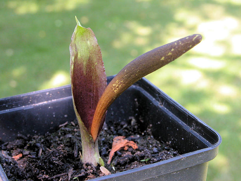 Weiterhin kenn ich kein Individuum namens "Bil Baker". Der gute Mann wurde mit einem doppelten L geschrieben und alle anderen Bill`s auch. Die Engländer sparen bei kurzen Vornamen nicht gleich einen Buchstaben ein. Mit den älteren Ausgaben des Plantfinder hast du Recht. Jedoch ist dies schon seit einigen Jahren anders. Kosequent wird den originalen Benennungen nachgegangen und im englischen unbekannte Umlaute richtig übernommen. Bei umgetauften Sorten wird auf den z.B. originalen deutschen Namen verwiesen. Es existieren durchaus Sorten von Arum die ich nicht kenne. Was anderes zu behaupten wär anmaßend. Nicht mal bei Eranthis kenn ich alle Sorten und da ist die Überschaubarkeit noch westentlich einfacher. Es passieren ja immer wieder mal Neuentdeckungen. Leider ist vieles was auf dem Kontinent bei Aronstäben benannt wurde nicht viel wert. Hab da schon einiges gesehen und da war fast nichts wirklich benennwürdiges dabei. Es werden oft falsche Vergleiche zu alten englischen Kultivaren gezogen und auf Teufel komm raus voreilig Namen vergeben. Der hier unten ist die Mamma von 'Chameleon' und wurde nie benannt!