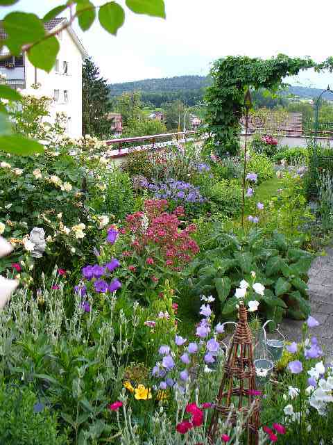 Salü Sabine456Es ist indirekt eine "Dachterrasse". Unsere Überbauung besteht aus 2 Doppeleinfamilien-Häuser die am Hang stehen. Und das hinter Doppel-Haus hat die Garagen neben unserer angebaut (Platzmangel), so das nun der eine Sitzplatz / Garten (mein Garten ist L - förmig) auf besagten Garagen ist. Ist nicht so einfach mit gestalten (hätte liebend gerne mehr Rosen), aber hab da Auflagen, darf z.B. keine Tiefwurzler setzten, wegen dem Garagendach. Hab da nun Gemüsegarten, Kräutergarten und Stauden gesetzt. Dort wo die Rose steht ist wieder normaler Grund und Boden und auch leider der kürzere Teil des Gartens :PLG bluemli..... Sag mal: das erste Bild sieht so aus als wenn es nicht ebenerdig angelegt wäre. Ist das eine Dachterrrasse ?