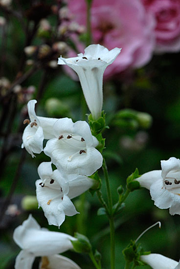 Nach meiner bisherigen Erfahrung sind die Penstemon-Hybriden härter und auch langlebiger als ihr Ruf. Das Exemplar, das ich 2004 gepflanzt hatte und dessen Photo in diesem Thread (Okt. 2005) gepostet ist, lebt noch und fängt jetzt wieder an zu blühen. Die Pflanze steht eher ungünstig mit zu wenig Sonne und zu nassem Boden. Den letzten Winter (falls man so was Winter nennen kann) hat sie ohne jeden Schutz überstanden, sonst hatte ich sie hauptsächlich gegen die Wintersonne mit Vlies geschützt. Der vorletzte Winter war ungewöhnlich hart und lang. Die Pflanze sah am Ende nicht gut aus - aber sie lebte! Und hat sich vollständig erholt.Ein heutiges Photo von einem der aufblühenden Triebe der "uralten" Hidcote Pink:
