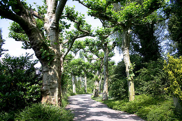Das ist eine Plantanenallee. Der schöne alte Baumbestand ist auch sehenswert.