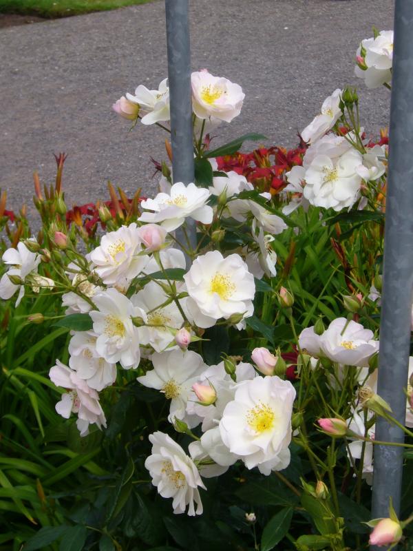 Hallo, wenn ich mich auch mal einmischen darf: Lykkefund ist für den Bogen fast zu groß, sie hat zwar kaum Stacheln, hat gelbe Staubgefäße und ist tatsächlich "milchweiß" also nicht knallweiß wie White Flight und duftet umwerfend (bei mir vom hinteren Garten bis auf die Straße nach vorn ...) und ist insgesamt ein höflicher Rambler (im Gegensatz zu BJ)Sie hat bei mir aber einige Zeit gebraucht bis sie in Schwung gekommen ist. Nach drei Jahren war sie erst knapp 2 meter hoch. Dies Jahr ist sie 10 und hat einen großen (!) Apfelbaum komplett erorbert. Für einen Bogen würde mir eher Alchemist einfallen (ist aber gefüllt) oder eben auch Frau Eva Schubert (Blüten halbgefüllt und recht klein).Viele Grüße von Lykkefund