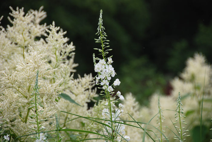 Ganz links im Bild das Epilobium, im Hintergrund links das gewaltige Aconogonum ´Johanniswolke´ besser bekannt als Polygonum polymorphum und alles überragend Thalictrum polygamum, es ist bestimmt 2m hoch und steht vollkommen aufrecht.