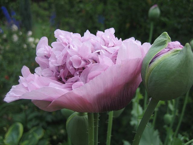 Bei mir sind gerade die gefüllten Schlafmohne zugange. Es sind sehr hohe und kräftige Pflanzen in rosa und lavendel.