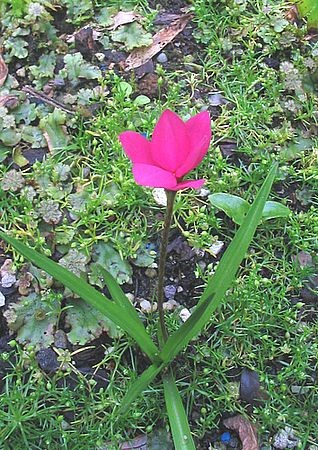 In meinem kleinen Steingartentümpelchen ist Rhodohypoxis millioides aufgeblüht. Leider lassen sich Farbe und Bildschärfe nicht so einstellen, dass es der Wirklichkeit entspräche.