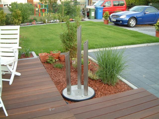 Hallo Gartenfreunde,im Anhang ein Bild unseres Pflanzbeets, in das ich am Wochenende einen Zierbrunnen eingebracht habe.Ich bräuchte noch Tipps, welche Pflanzen, Sträucher, Bäume hier besonders gut dazu passen würden.Vielleicht könnte man noch ein paar Wasserpflanzen in die Nähe des Brunnens anordnen?!Möglichst ohne großen Schnickschnack...Das Beet liegt den ganzen Tag in der Sonne.Der Mutterboden ist mit einem rotbraunen Nadelholz-Mulch (grob) bedeckt.Viele Grüße!