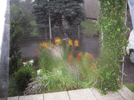 Heute schüttet es wieder nach 2 schauerhaften Tagen. Mein Unkraut feiert Party......erst war's zu schwül zum jäten, nun ist's zu nass.....