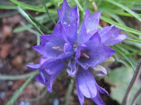 ... und Glockenblumengewächs.Edraianthus kitaibelii habe ich aus einer Samenspende gezogen. Habe leider nichts über sie gefunden. Diese Pflanze unterscheidet sich von anderen Büschelglocken dadurch, dass sie kurze, kräftige Blütenstiele hat. Dadurch liegen die Blüten nicht irgendwo in der Gegend herum