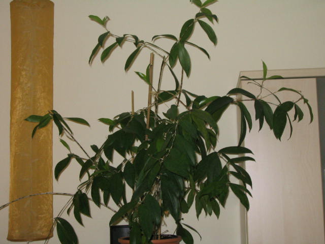 Hallo,mir ist da ein Mißgeschick bei der Pflege dieser ansonst sehr robusten und dankbaren Zimmerpflanze passiert. Hoffe sie überlebt es. Hatte zum Beschweren des Topfes einen Salzkristall auf den Topf gelegt und dieser hat wohl Wasser gezogen, was ich aber nicht gleich bemerkt habe.Nachdem ich gesehen habe, daß die Pflanze keinen Wassermangel hat, wie sie das sonst schön mit leicht hängenden Blättern anzeigt, sondern einen Salzschaden, habe ich sie gut durchgespült und umgetopft.Vorsichtshalber habe ich aber mal ein paar Fotos zur Bestimmung gemacht.Hatte sie mal in einem Restewaren-Laden gekauft, mir aber dummerweise nicht die Bezeichnung gemerkt. Ich meine irgendwas mit "Exotica".Einen Steckling hatte ich vor längerem schon in einen anderen Topf gesteckt und dieser scheint aus den Blattachseln auszutreiben.Die Stengel erinnern irgendwie an Bambus.